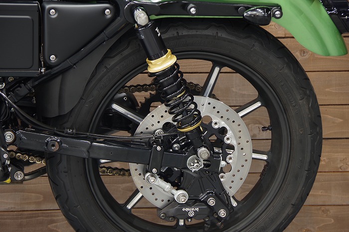 ベルトガードは一国オリジナルパーツです。ナンバーレイダウンキットも装着されています。